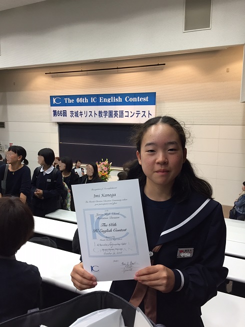 本日、茨城キリスト教学園英語コンテストがあり、本校より2年生の女子生徒が出場しました。
