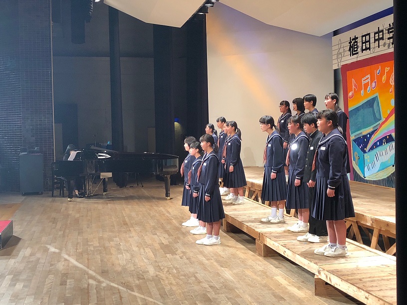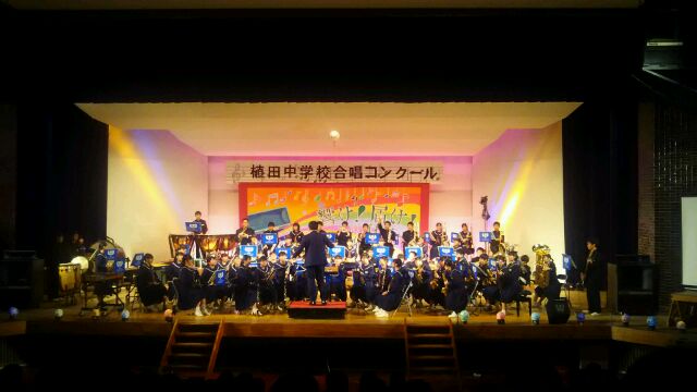 全学級の発表が終わりアトラクションとして合唱部、吹奏楽部の演奏があります。