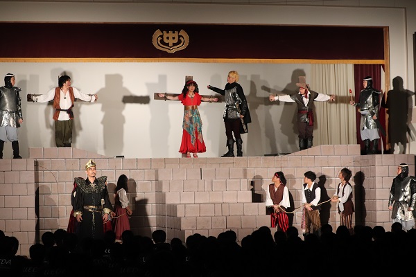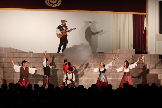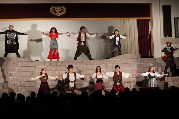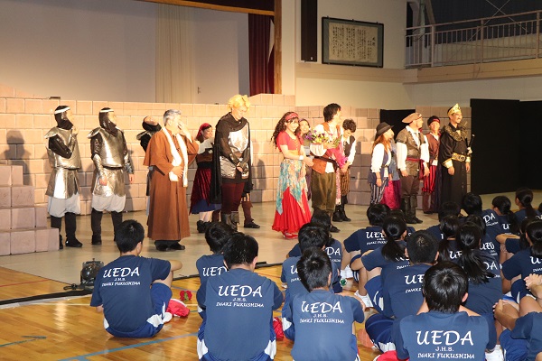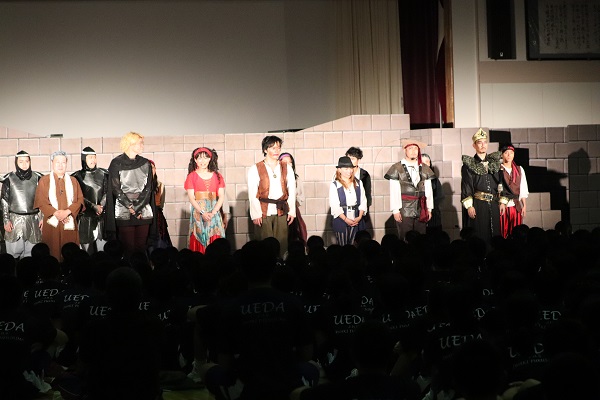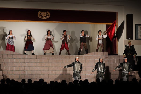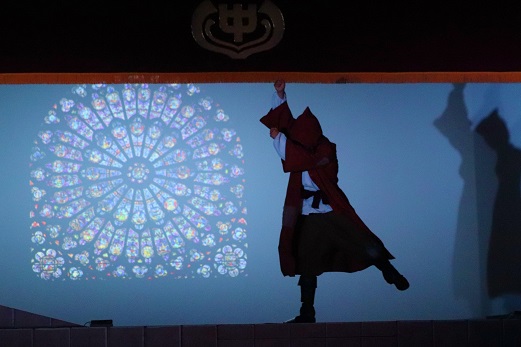 9月21日(金)に鑑賞教室を開催しました。劇団ショーマンシップの皆さんを招き、「ノートルダム物語」を上演していただきました。代表生徒の8名も出演し、与えられた役を熱演していました。
