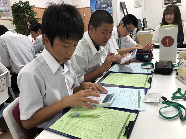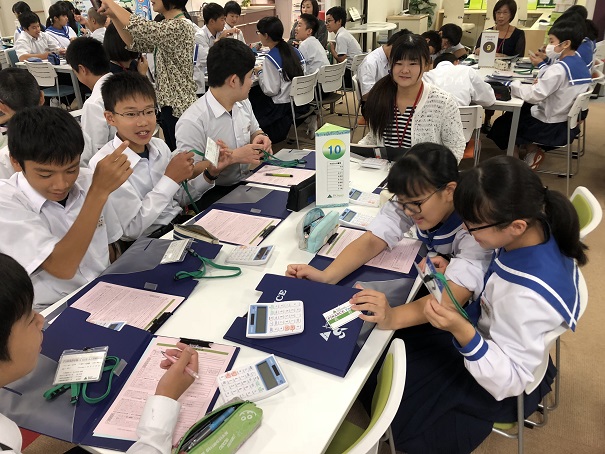 2018年9月27日 11時50分今日は、2年の4,5組がファイナンスパークでの体験活動です。