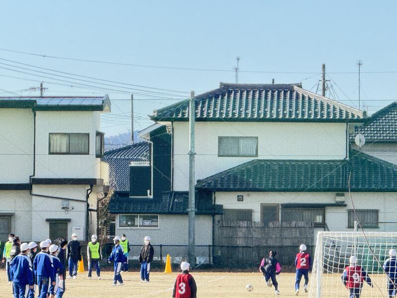 1年の体育ではサッカーを行っています。楽しそうにミニゲームを行っていました。
