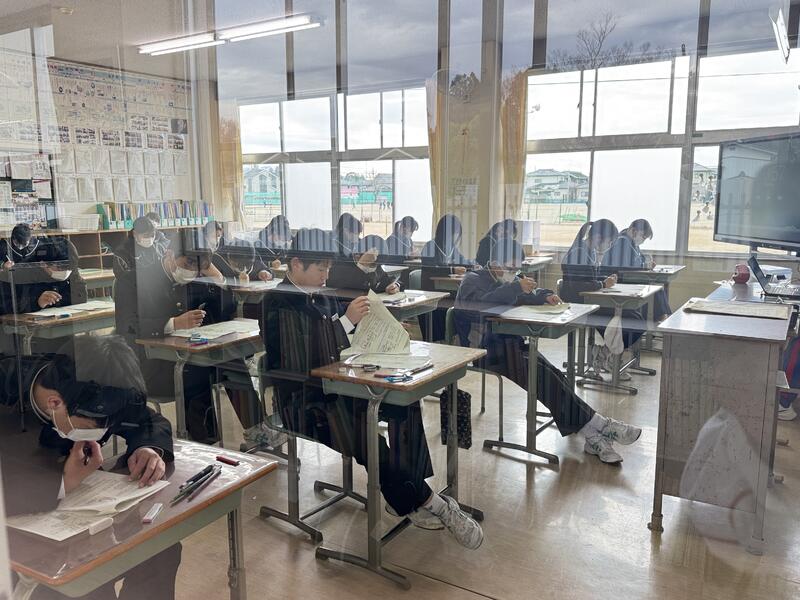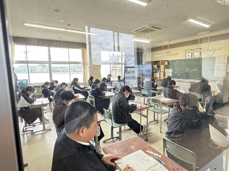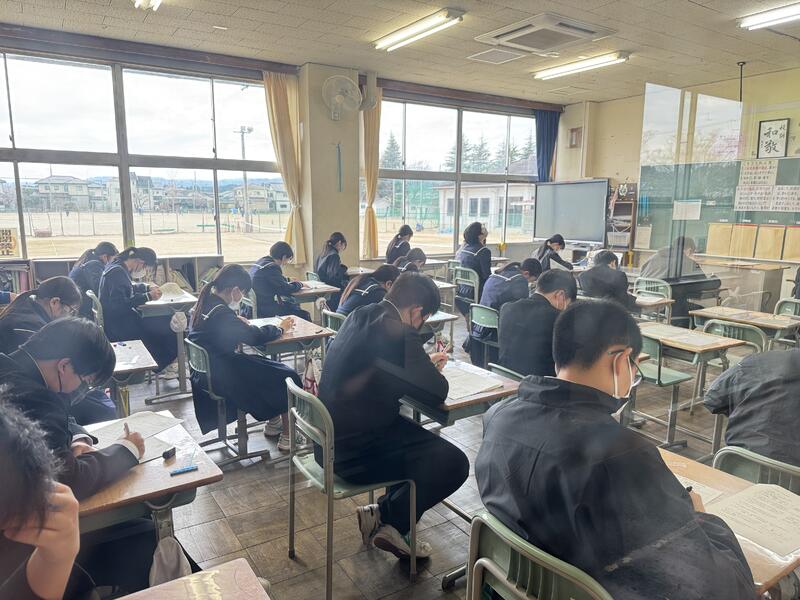 3年生は、中学校最後の定期テスト「学年末テスト」に取り組んでいます。成績にも繋がる大事なテストです。頑張ってほしいと思います。