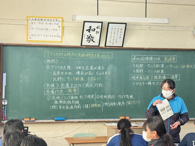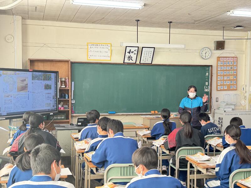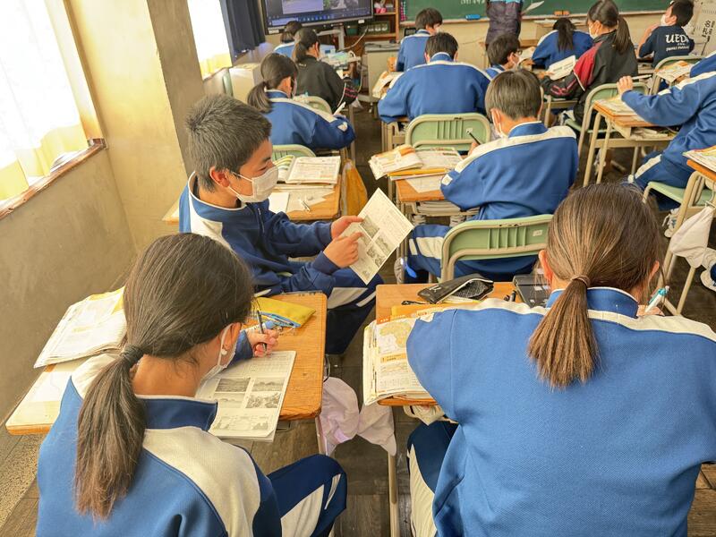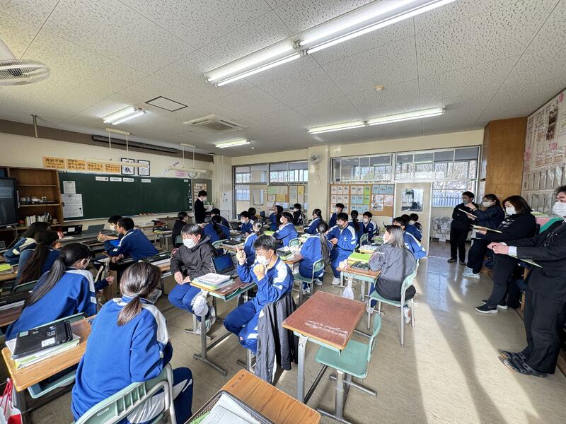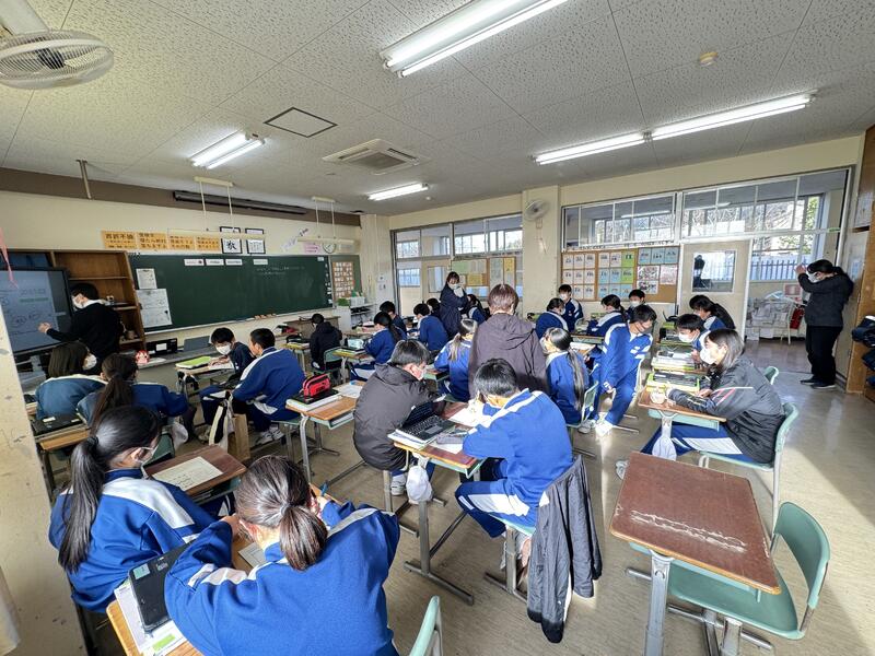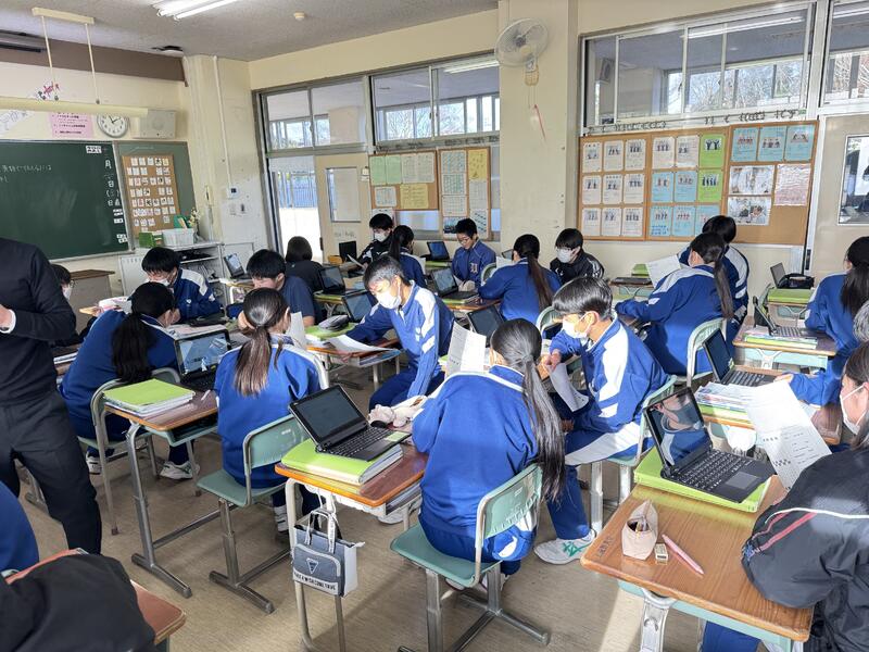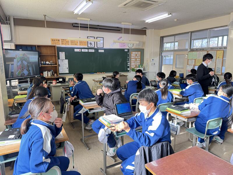 今日は、3年の英語科で研究授業を行いました。日本の伝統行事である正月について英語で伝える授業で、どういった表現を使えば「おせち」や「初詣」を外国人に分かってもらえるように伝えられるか考え表現していました。