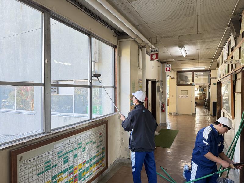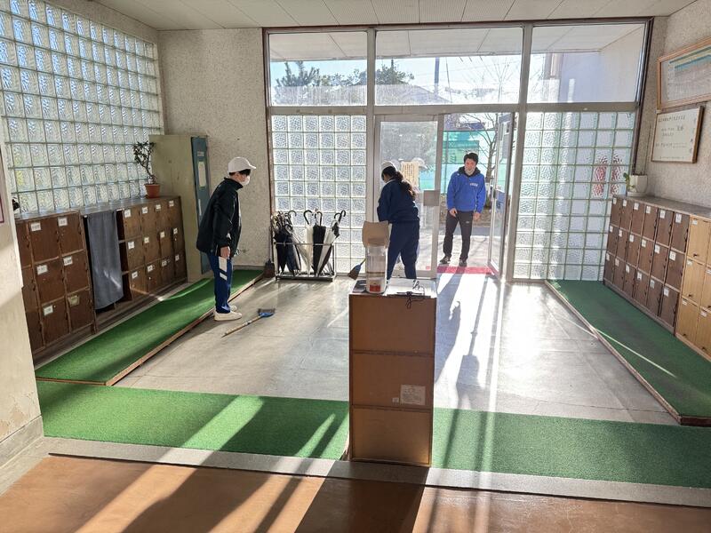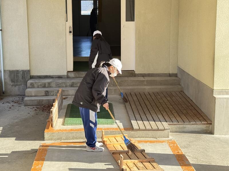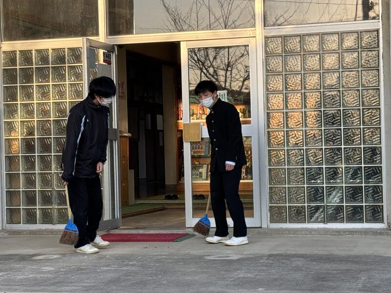 生徒たちが、玄関清掃、あいさつ運動等頑張っています。