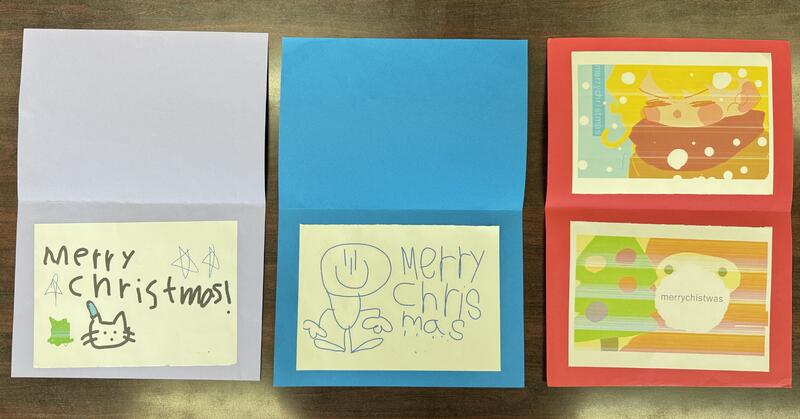 6組の生徒たちから、授業で作った素敵なクリスマスカードをいただきました。