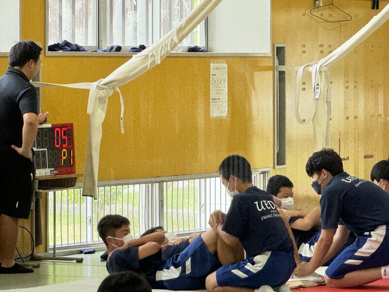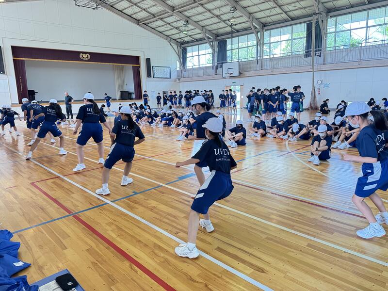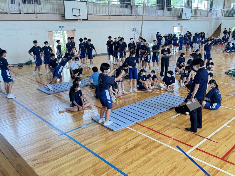 本日、体力テストを行いました。ボール投げや反復横跳び、立ち幅跳びなど、熱い中でしたが水分を補給しながら頑張っていました。