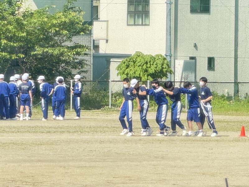 全校リレーやムカデ競走の練習をしていました。