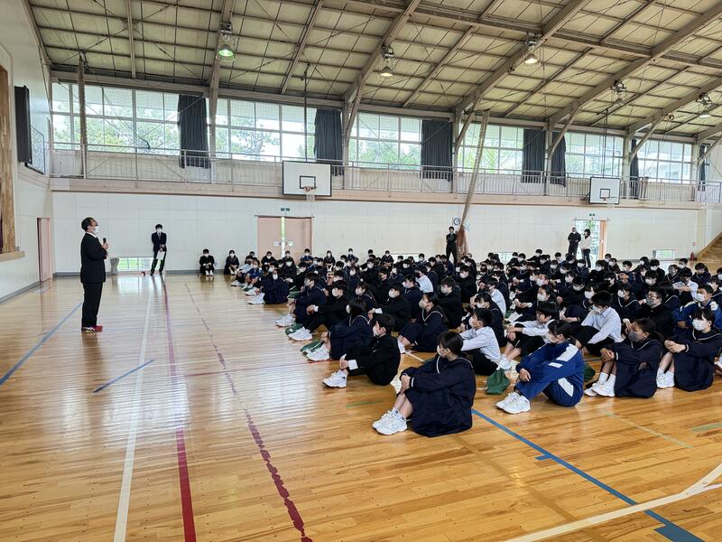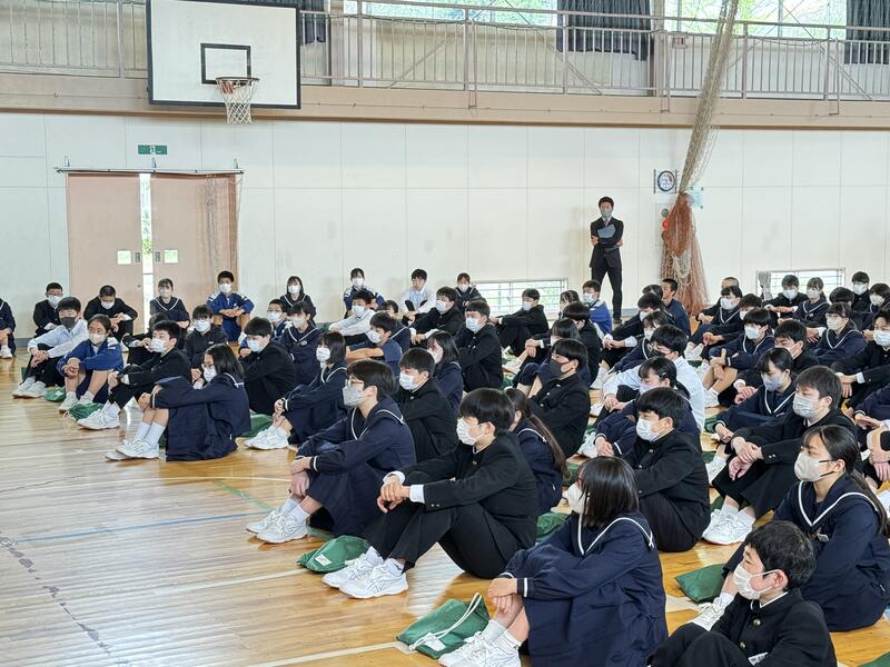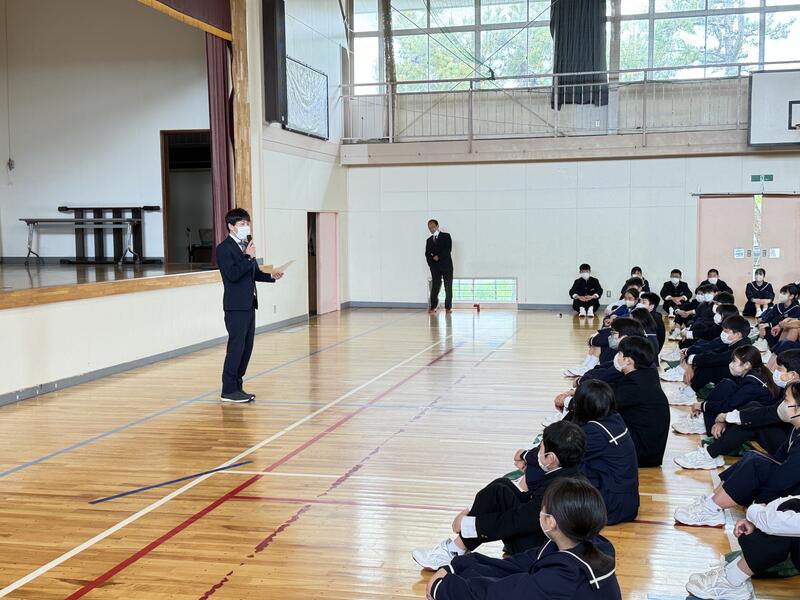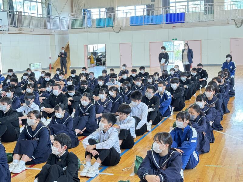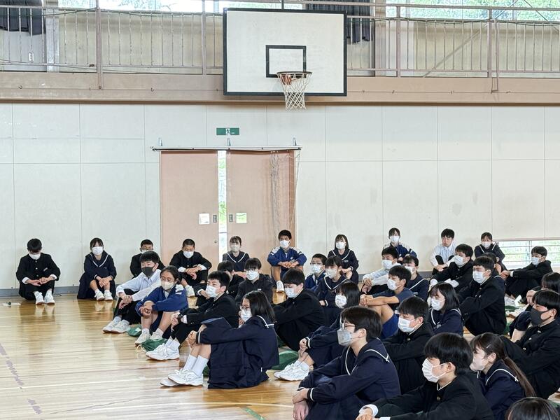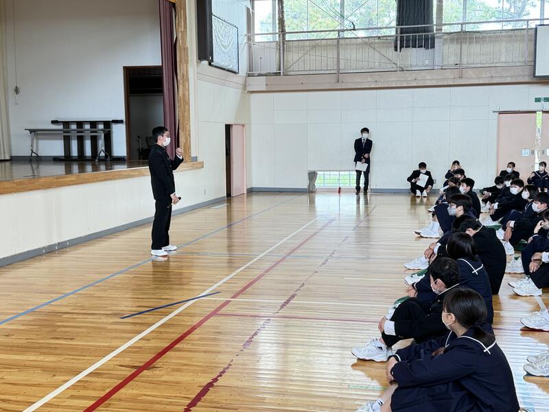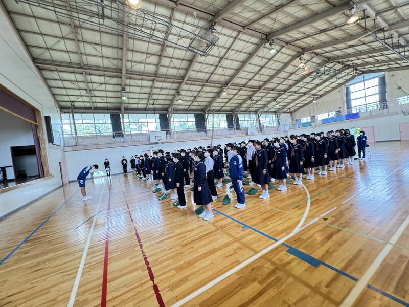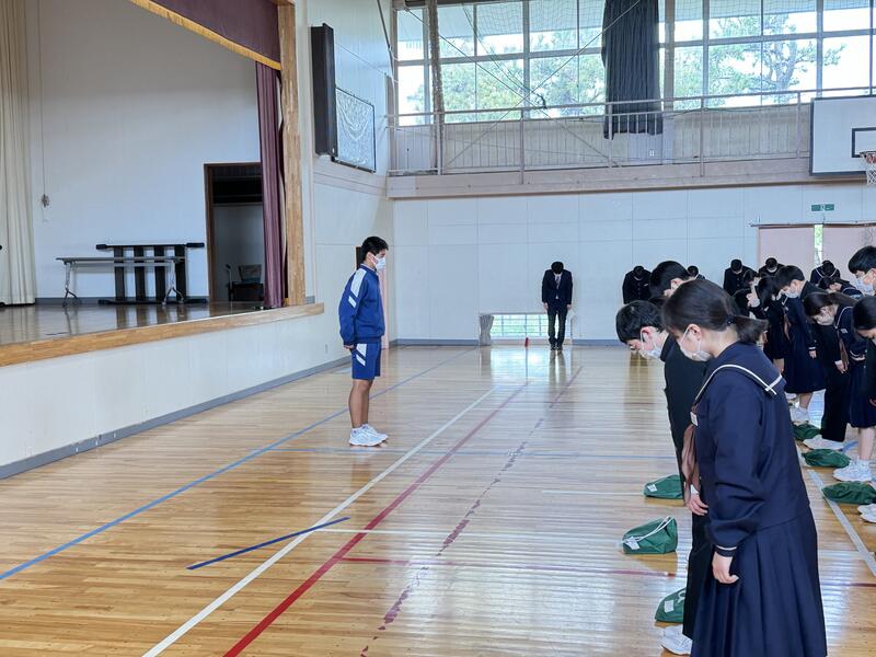 1校時体育館に集まり、修学旅行解団式を行い修学旅行3日間を振り返りました。