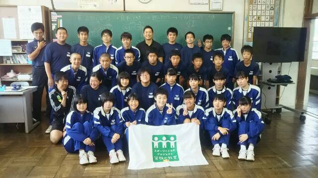 2年生の1,2,3組は、本日は、スポーツ心のプロジェクト「スポーツ笑顔の教室」を行っています。