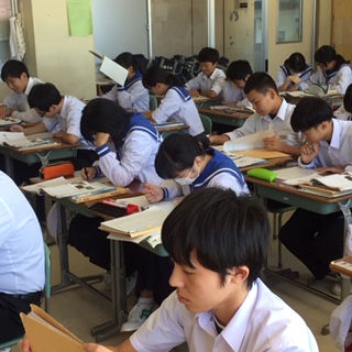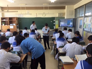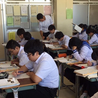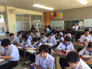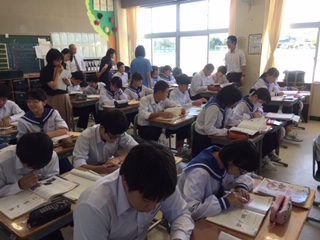 2018年10月2日 19時30分本日は、いわき市総合教育センターから指導主事の先生をお迎えして、3年生の英語の授業で研究授業を行いました。生徒は皆、真剣に取り組んでいました。