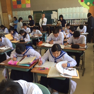 本日は、いわき市総合教育センターから指導主事の先生をお迎えして、3年生の英語の授業で研究授業を行いました。生徒は皆、真剣に取り組んでいました。