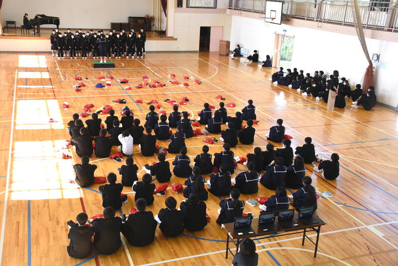 本番に向けて、全校生の機運が盛り上がりつつあります。学級の全生徒が、合唱を仕上げるために心を一つにして力を合わせる過程で、多くのことを学んでほしいと考えています。