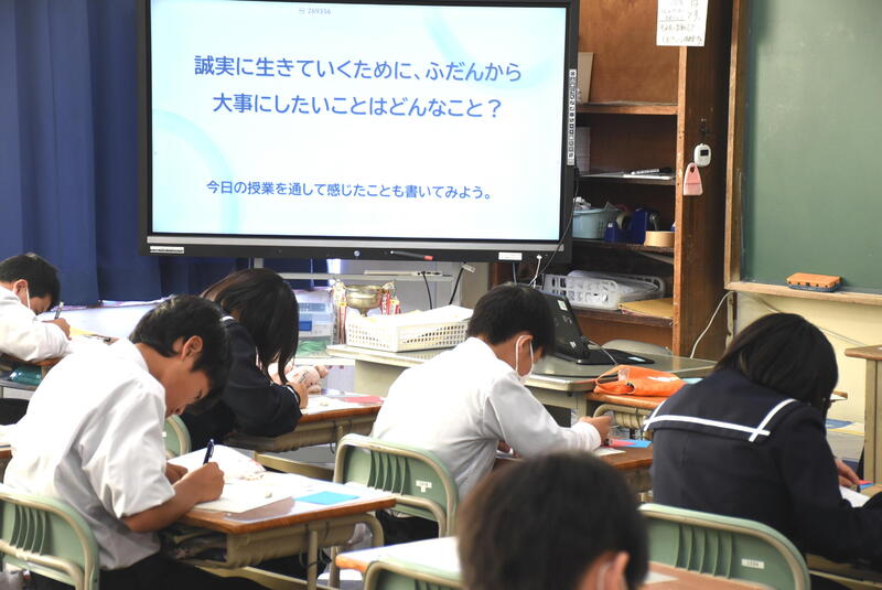 2023年10月20日 14時23分20日(金)午後、1年2組で道徳の時間の研究授業を実施しました。