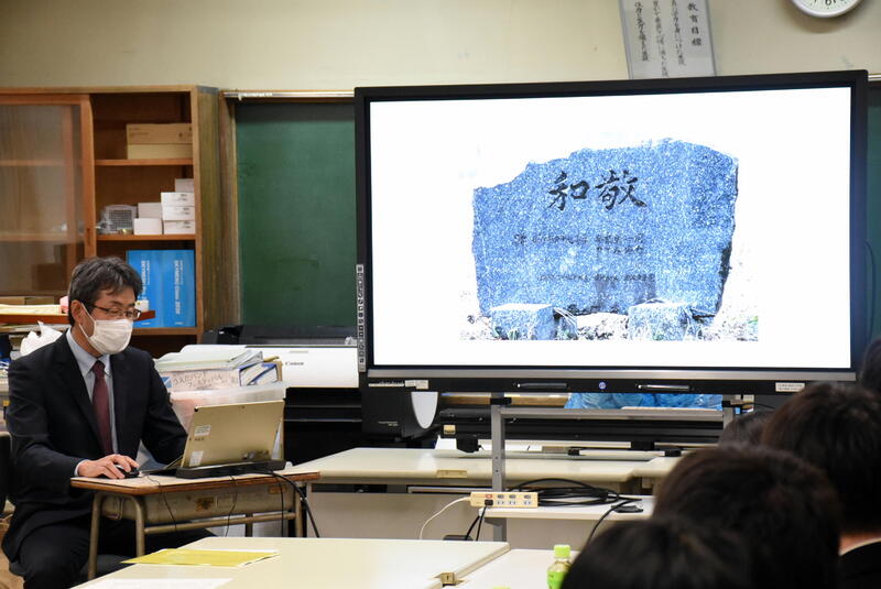 なお、揮毫いただいた「和敬」は、銀塩プリントで写しを作成し、各学級の教室前面に掲げました。