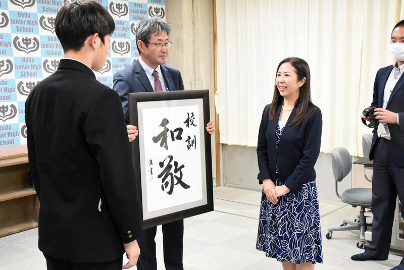 2023年11月22日 14時50分11月20日(月)夕刻、本校同窓会長 様をはじめ、書道家 中西 様、同窓会副会長 様、学校評議員 様、PTA会長・副会長 様をお迎えし、「植田中学校 校訓を披露する会」を開催しました。