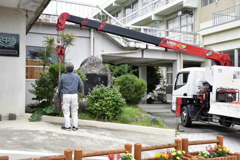 また、校訓の元となった体育館脇に置かれていた石碑は、大野石材店 様のお力添えにより、校舎玄関口に移設し、コンクリートで固定しました。