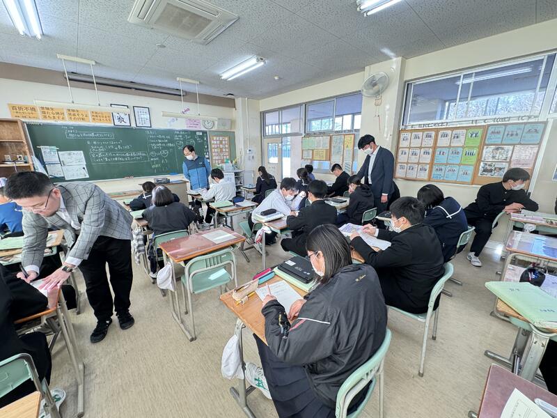 2024年12月11日 15時53分本日、1年体育で「柔道」、3年数学で「相似な図形」の授業研究を行いました。先生方もお互いに教科を超えて参観し、それぞれの授業での工夫された取組を各自の授業にいかに取り入れられるかなど参考にしながら参観していました。