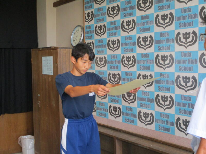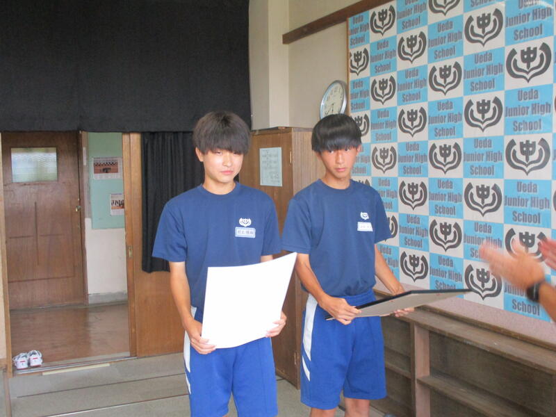 終業式後には、数々の表彰やいわき南地区中学生弁論大会で優秀賞を受賞した生徒の発表、合唱部の壮行会を行いました。