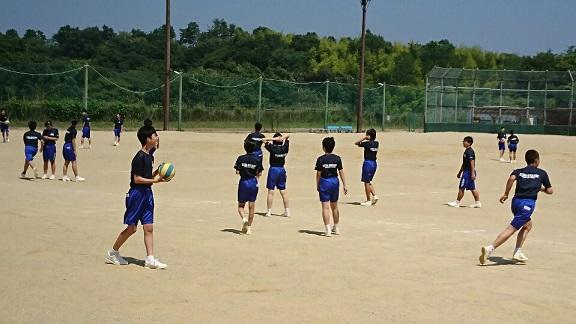【広い校庭でボール遊びをする生徒や鬼ごっこ?をする無邪気な生徒たち】
