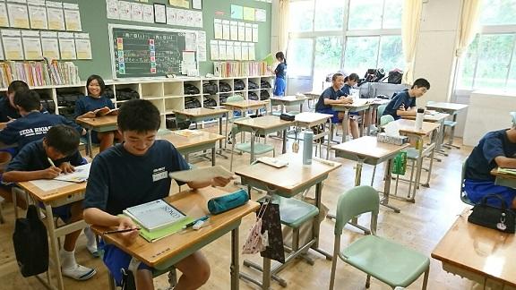 【中には期末テスト後にも関わらず、学習に励む生徒。自主的な勉強ですか?それとも次の時間の宿題ですか?】