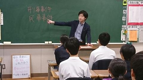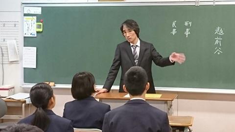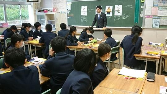 2校時に1年生及び3年生の各クラスに、また3校時には2年生の各クラスに一人ずつ弁護士の方が入ってもらい授業をしていただきました。