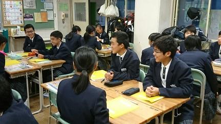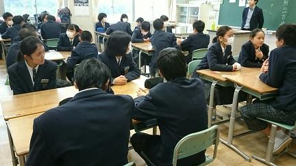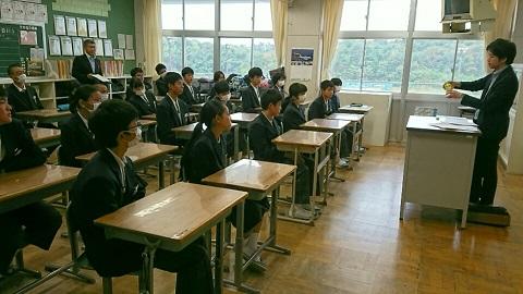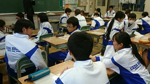 【2年2組:生徒達は正しい姿勢でしっかりと耳を傾けて聴いています】