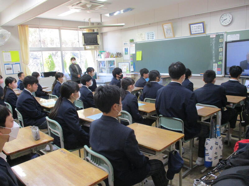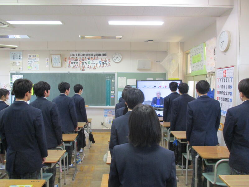 終業式と各種表彰をリモートで行いました。3学期も、よろしくお願いします。