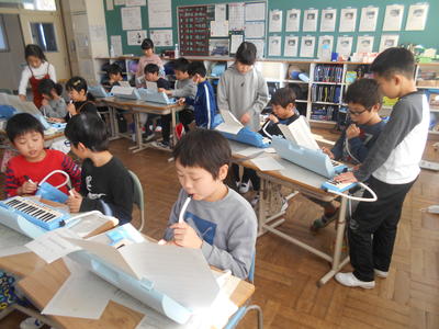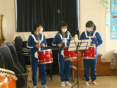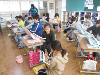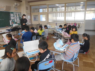 2020年1月21日 14時46分鼓笛の引き継ぎが行われています。6年生が各パートに分かれて、やさしく教えていました。4年生も2,3年生に鍵盤ハーモニカを教えていました。みんな一生懸命に取り組んでいました。