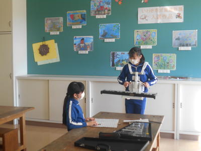 鼓笛の引き継ぎが行われています。6年生が各パートに分かれて、やさしく教えていました。4年生も2,3年生に鍵盤ハーモニカを教えていました。みんな一生懸命に取り組んでいました。