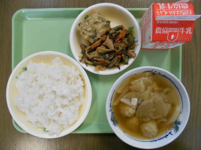 2020年1月28日 12時44分24日(金)~30日(木)は、学校給食週間にちなんで、人気の献立や特別献立の給食です。今日は、桶売伝統食給食でした。(ごはん きりぼし 揚げ豆腐・きのこみぞれだれ まるめ(きじ肉を使った肉団子) 牛乳)