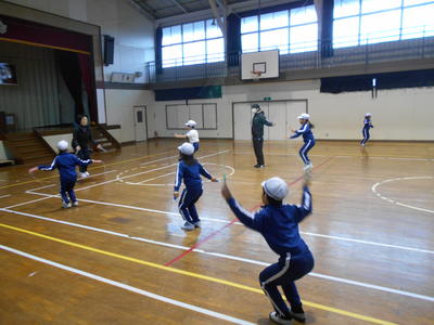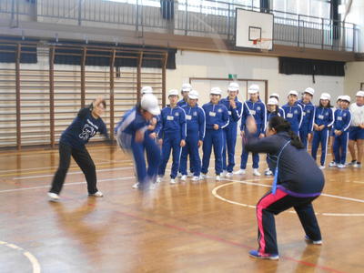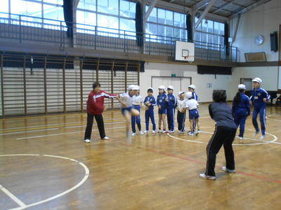 2校時に1・2年生、3校時に3・4年生、4校時に5・6年生がなわとび講習会を行いました。3名の講師の方に基本的な動きやあや跳び、二重跳びなどの種目に応じたポイントを教えていただきました。長なわ跳びでは、8の字跳びやダブルタッチも教えていただきました。授業の中で、なわとびの技能がめざましく向上しました。