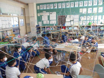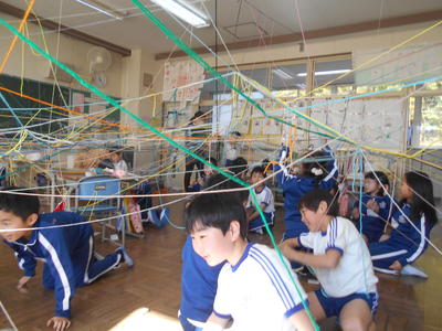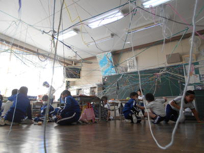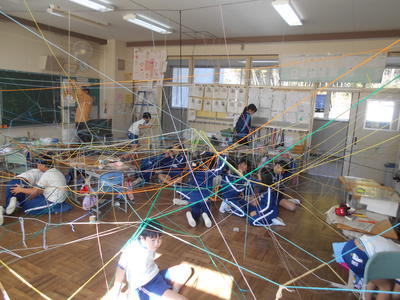 休み時間には、1,2年生をヒモヒモワールドに招待しました。みんな大喜びでした。