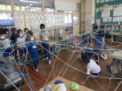 2020年2月5日 12時06分3年 図工 テーマ「くものすハンモック」
