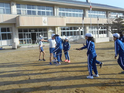 2020年2月14日 08時32分長なわ記録会に向けた練習に取り組みました。学年記録に向かって、心を一つにがんばっています。