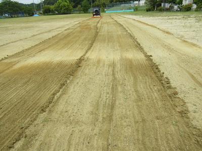 午後の時間帯に地域の方がお見えになり、また車で鉄製レーキを引いてくださいました。時間をかけて念入りに引いてくださり、見違えるほどきれいな校庭になりましたレーキを作ってくださったシマダ機械様、引いてくださった地域の方のご厚意に感謝しますありがとうございました
