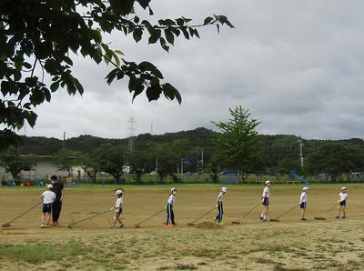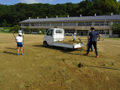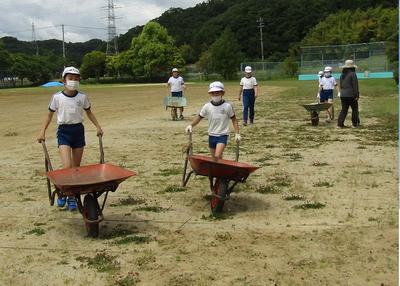 2020年6月4日 12時42分今日も常光サービスさんが土蜂駆除を行っています土蜂は他の蜂と違って群れでおそったりすることはなくおとなしい蜂なので校庭の活動は可能なのですが、なんとか体育の授業に最適の校庭を提供したいと、学校と地域の方と関係機関との協力で毎日がんばっています。