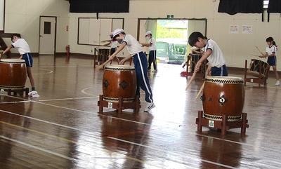 体育館では、4年生だけで、太鼓の自主練が行われていましたやる気満々の4年生、がんばって