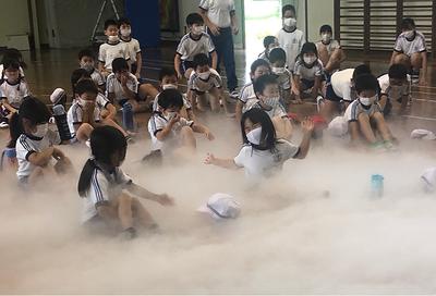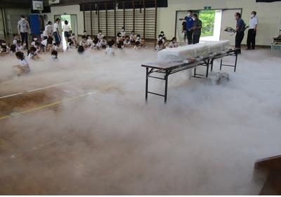 「地球温暖化の原因は何ですか?」と問いかけると、6年生から「二酸化炭素」「CO2」と答えが返ってきました二酸化炭素がドライアイスであり、重い気体であることを実験で紹介です