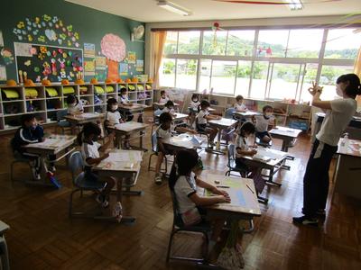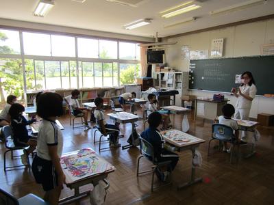 1年生は、国語のテストや生活科でアユを放流したことを思い出し、アユの絵を描いていました。どのアユも生き生きしていて、とても上手です