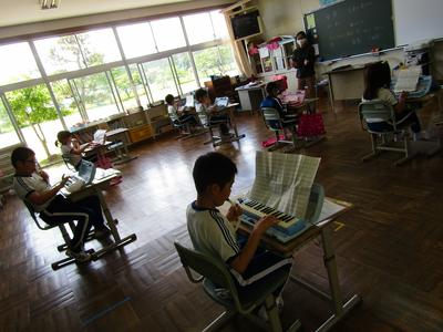3年生は、音楽で「NHK for School」を活用し、鑑賞のしかたを学んでいました曲の感じを感じ取ったり、曲想から題名を考えたりして鑑賞したあとは、鍵盤ハーモニカで「ヤングマン」などの演奏を楽しみました