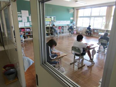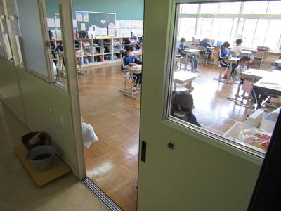 子どもたちが帰ると先生方が消毒作業を行います明日も元気に、安心して学校に来ることを願っています
