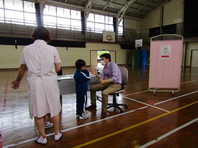 今日は学校眼科医の小林豊茂先生がお見えになり、眼科検診を行いました子どもたちが密にならないよう、体育館で実施しました子どもたちは間をあけて上手に並び、短時間で診察を終えることができました