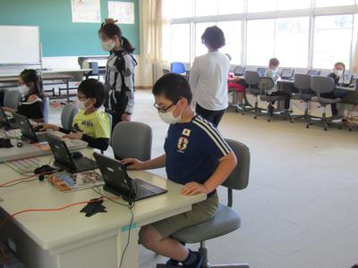 5年生は、社会科で映像を見ながら日本の領土について調べていました