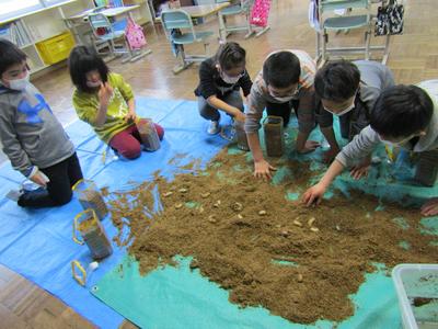 3年生の教室のカブトムシは、かちかちに固めたクヌギマットを掘り続け、容器の一番下まで潜って静かに眠っていました子どもたちは「すごいここまで潜った」と大喜びですこれから図鑑でカブトムシの生態を調べていきます