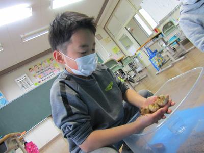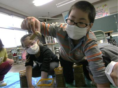3年生は理科で昆虫について学習します。その一環で、カブトムシを幼虫から飼育することになりました一人1匹ずつ、ペットボトルで飼育します。子どもたちは幼虫に驚いたり怖がったりせず、自分で手にとってペットボトルに入れ、潜っていく様子をじっくりと観察しました。さすが豊かな自然環境で育った子どもたち、頼もしいですこれから毎朝、カブトムシの幼虫が育っていく様子を観察します。楽しみですね