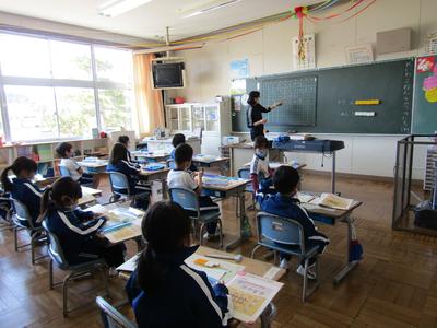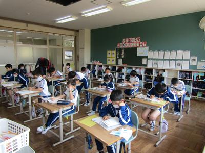 2年生は、算数で多い少ないでわかるグラフの特徴を考えていました。高学年でも行うグラフの読み取りは、すでに2年生から始まっています子どもたちは真剣に学習を行っていました
