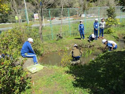 大休憩には、元気に遊ぶ子どもたちの姿が見られました一輪車乗りやビオトープは人気ですビオトープの今日の水温は10度、まだまだザリガニは出てきませんね