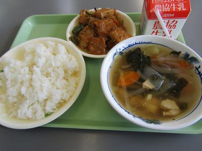 今日はマーボーあつあげ、ご飯、牛乳、はるさめスープです。給食では、いっぺんに900人分も作るので、崩れないように豆腐の代わりにあつあげでマーボー豆腐を作るのだそうです。今日もおいしい給食でした