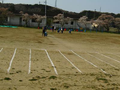 新しい体育委員会が朝から校庭にラインを引いたりカードを置いたりして業間運動の準備をしています。どんな運動になるのか楽しみです