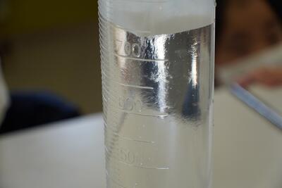 そこで理科の先生は、今度は大きいメスシリンダーを用意して、同じ実験をしてみました。